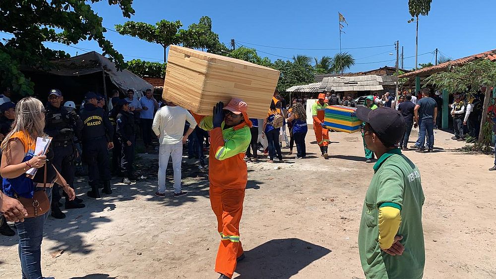 Após reunião com representantes dos pescadores, Prefeitura de Maceió e Gerenciamento de Crises da Polícia Militar (PM), começa a ação para a realocação dos trabalhadores da balança do peixe de Jaraguá para o Centro Pesqueiro. Mais cedo, os trabalhadores protestaram, pela segunda vez consecutiva, contra a ação da Prefeitura que anunciou a retirada dos trabalhadores e remoção das estruturas para esta quarta-feira (04).