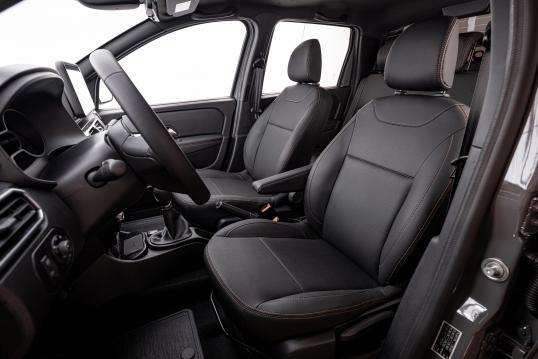 A Oroch 2023 traz o conforto de uma verdadeira picape, com 2.829 mm de entre-eixos, que garante espaço amplo para todos os ocupantes. Cinco passageiros viajam confortavelmente graças ao ótimo espaço para pernas e cabeças. Ao volante, o motorista encontra facilmente uma posição ideal de dirigir graças aos ajustes de altura do banco e da coluna de direção. A posição de dirigir elevada garante ótima visibilidade e facilita a identificação de obstáculos ao redor do veículo, garantindo maior segurança. O volante ergonômico tem ótima empunhadura.
