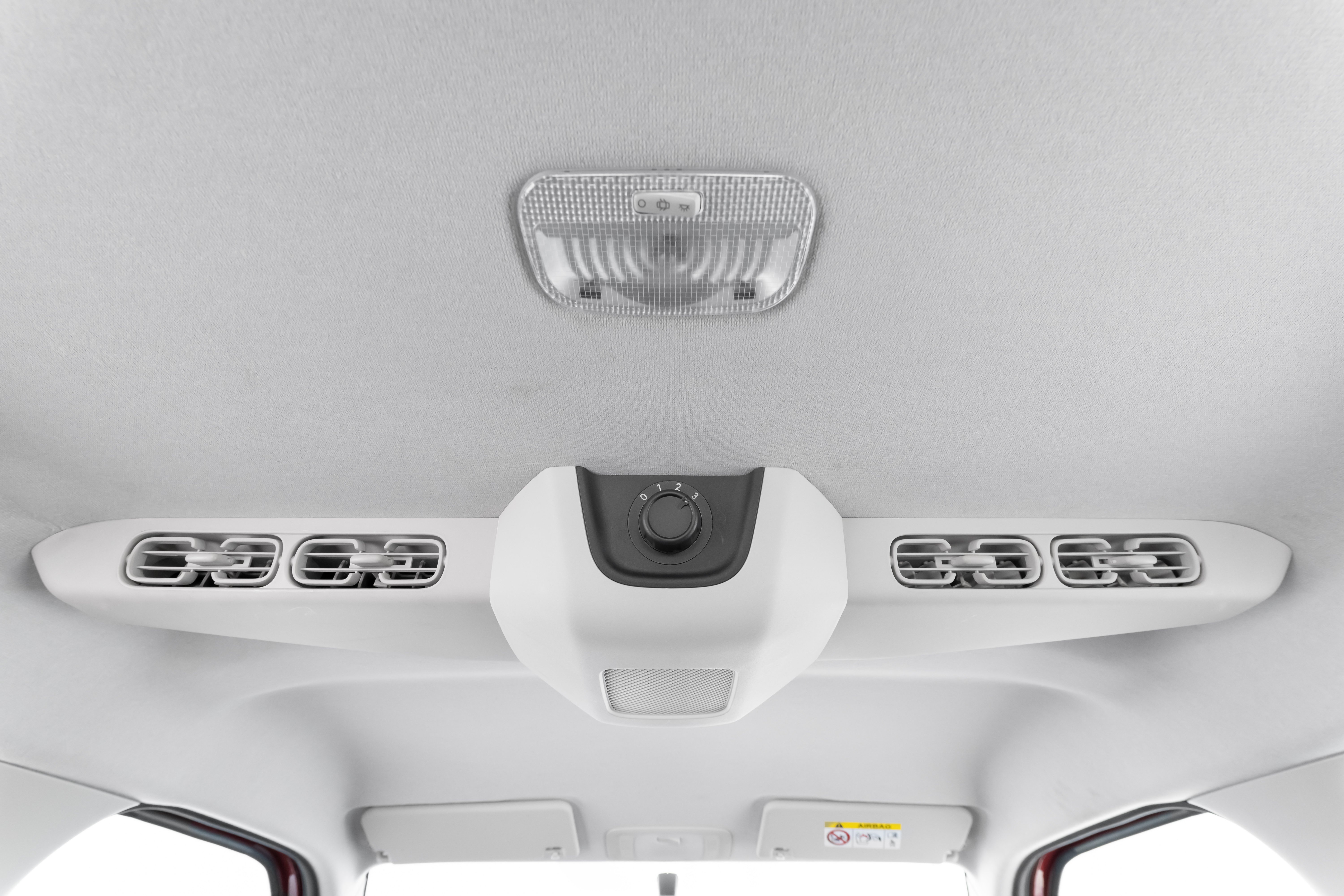 Usando um blower com funcionamento independente, ele envia um fluxo de ar intenso para os passageiros das fileiras posteriores, eliminando o desconforto térmico para quem se senta atrás.