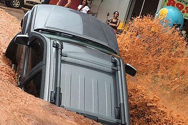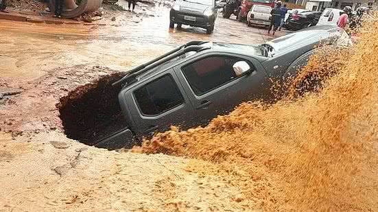 Oswaldo e a mulher foram socorridos pelo comerciante Carlos André, 32 anos, e os funcionários dele. "Eles estavam passando e, primeiro, abriu um buraco pequeno. Eles não conseguiam sair. Aí, eu e meus funcionários fomos até o local ajudá-los a deixar a caminhonete”, conta.