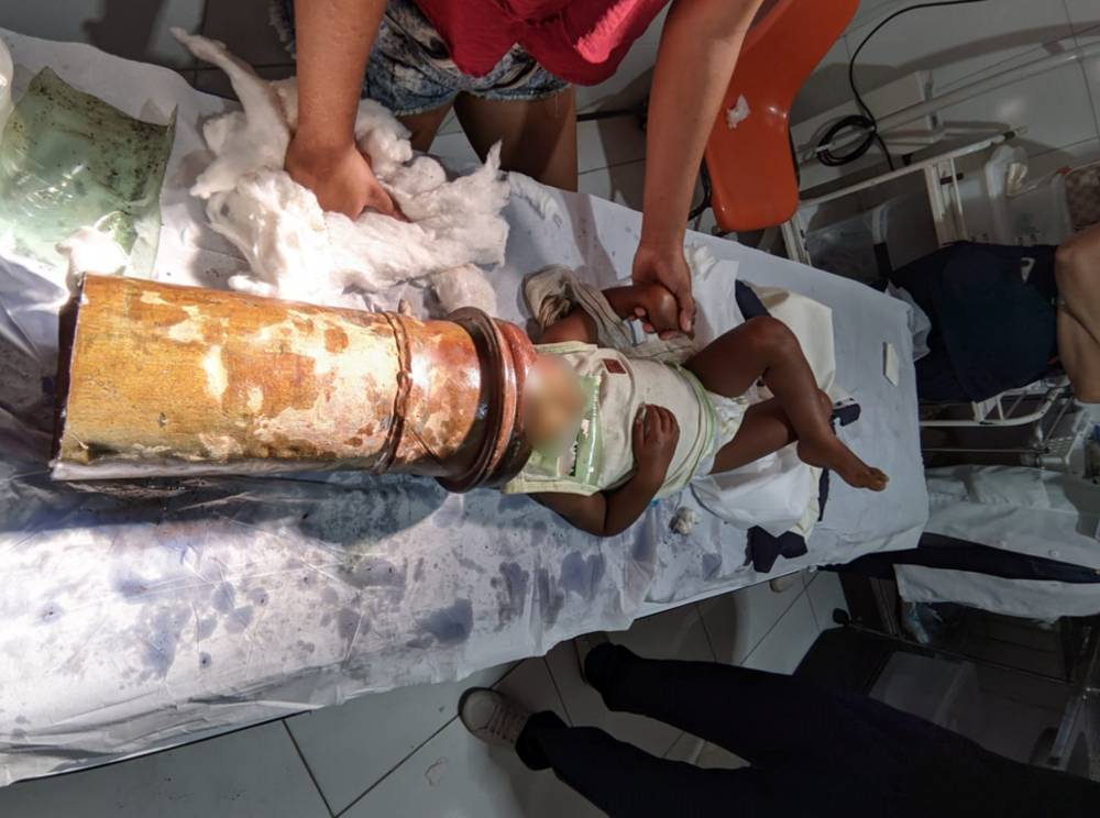 Um menino de apenas 2 anos precisou ser socorrido após ficar com a cabeça presa a um tubo de metal, em Capela, no interior de Alagoas. O resgate da criança durou cerca de duas horas e aconteceu na manhã desta quinta-feira (1).