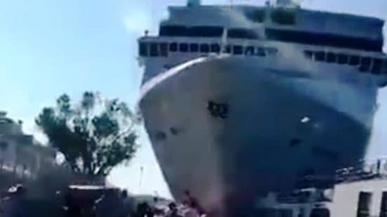 Os turistas, em terra, começaram a correr quando observaram o navio de 13 andares “MSC Opera” raspando o cais, com o motor fazendo um grande barulho, antes de colidir com um barco de turismo, de acordo com um vídeo publicado no Twitter.