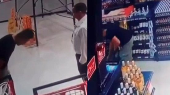 Após finalizar a compra, ele é abordado por um segurança no corredor do shopping. Ao retornar com o funcionário, o delegado retira o produto do bolso e o entrega ao vigilante, que realiza uma revista. Veja: