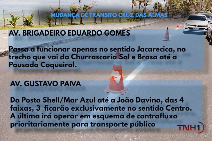 Foi anunciada nessa quarta-feira (27) a implantação do binário das Avenidas Brigadeiro Eduardo Gomes e Comendador Gustavo Paiva, em Cruz das Almas. A sinalização já começou a ser instalada e a previsão é que a mudança passe a valer a partir do dia 6 de novembro.