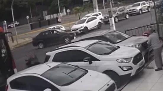 Imagens de uma câmera de segurança mostram o momento em que a moto é acertada pelo carro de passeio, de cor preta. No vídeo, é possível observar que, enquanto os outros motoristas freiam para o automóvel entrar na via, o piloto da moto passa direto e há o choque. A batida faz as duas vítimas caírem no asfalto, sendo também atingidas pelo ônibus que vinha em direção contrária.