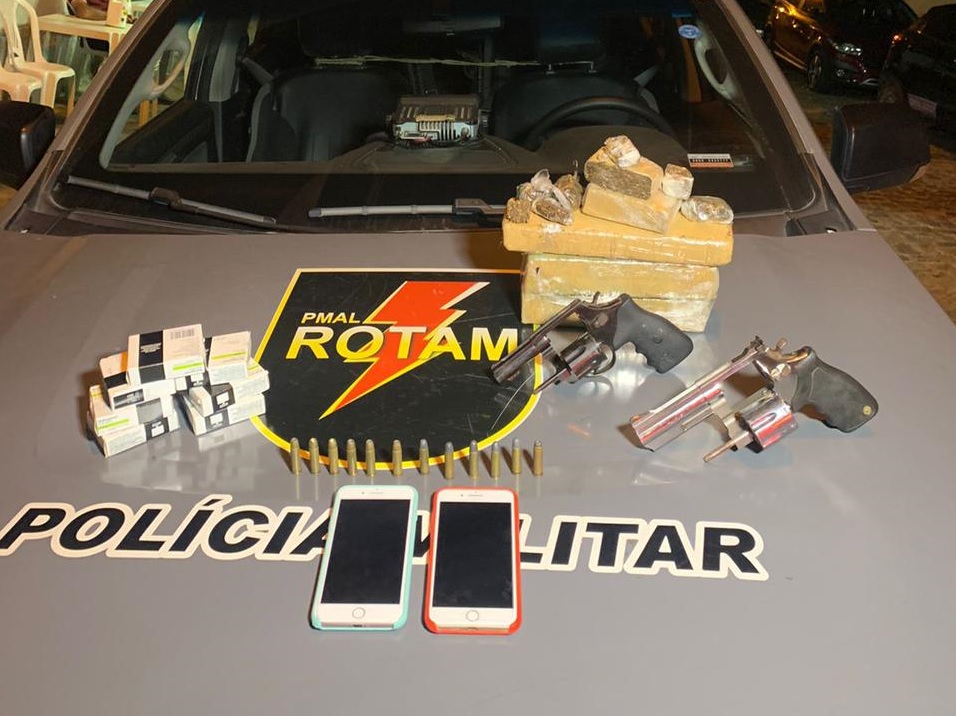 A polícia fez buscas dentro do Ônix e encontrou a arma de fogo com seis munições, sendo duas delas deflagradas. Já na residência dele, mais drogas foram encontradas, bem como outra arma de fogo. Ao todo foram recolhidos: 3,2 kg de maconha, sete caixas de Rohypnol, com 30 comprimidos, dois revólveres de calibre 38, 12 munições de mesmo calibre, dois celulares e uma maquineta de cartão de crédito. O carro também foi apreendido.