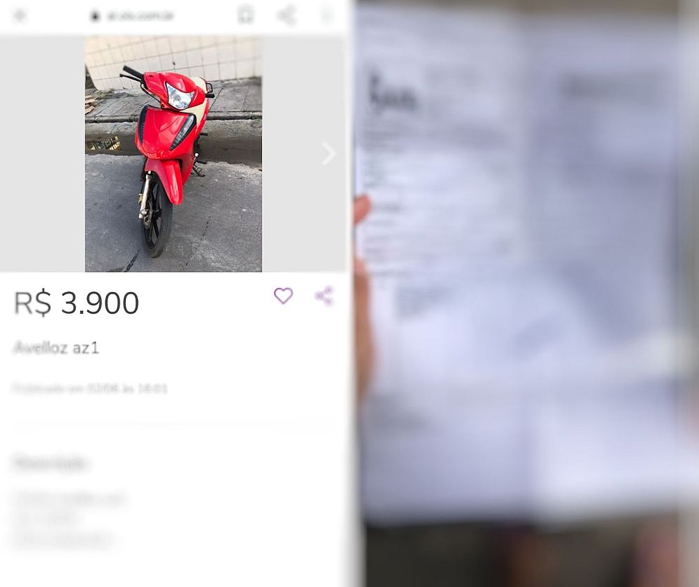 "Após a menina confirmar que era a moto, a gente liberou ele, no caso ela disse que não queria [comprar]. Em seguida, minutos à frente, a polícia fez abordagem, verificando tudo, o chassi batendo direitinho. E havia uma cópia de nota fiscal falsa", complementou.