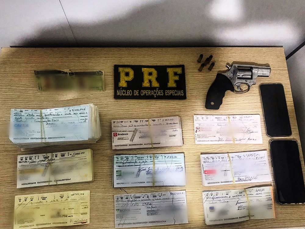 De acordo com informações da Polícia Rodoviária Federal (PRF), os suspeitos estavam em um Toyota Etios com placa do Ceará e foram abordados durante fiscalização de rotina. O revólver calibre 38 municiado e os talões foram encontrados em um compartimento oculto que ficava atrás do banco do motorista.