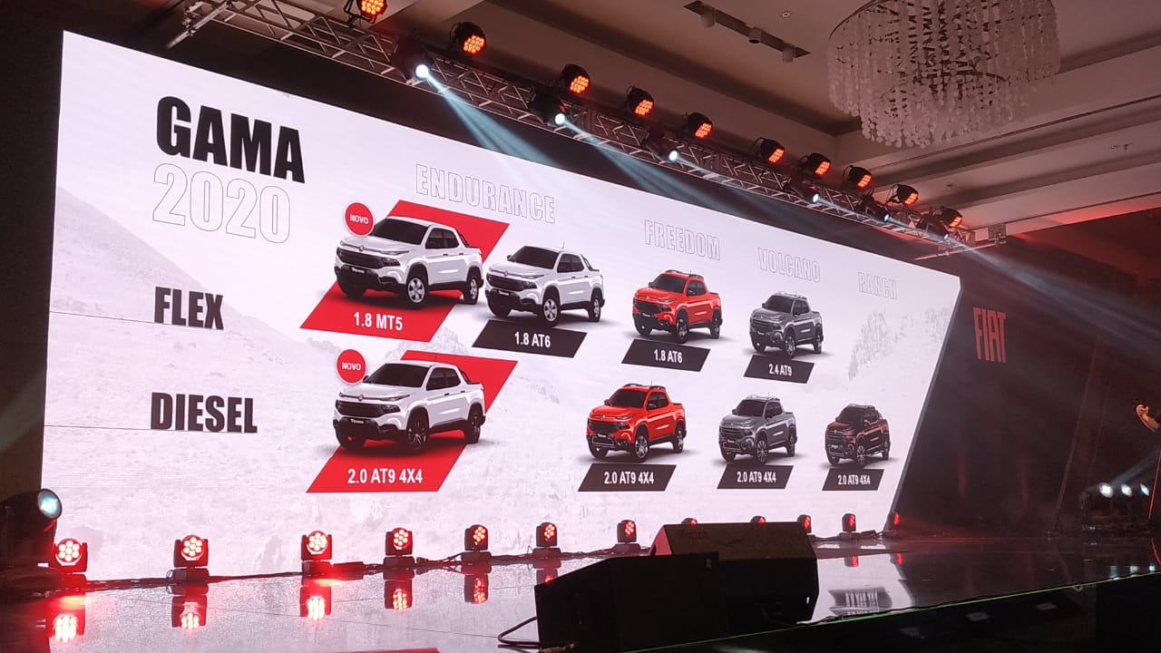 Entre as picapes médias e grandes (segmentos C e D), o Fiat Toro é líder de vendas desde seu lançamento, tendo em 2019, 29,7% de market share. Entre as novidades, foram incluídas duas novas versões de entrada Endurance (uma Flex com câmbio manual e uma Diesel com transmissão automática de nove velocidades), para tornar o SUP (Sport Utility Pick-up) ainda mais atraente e ampliar seu leque de consumidores.
