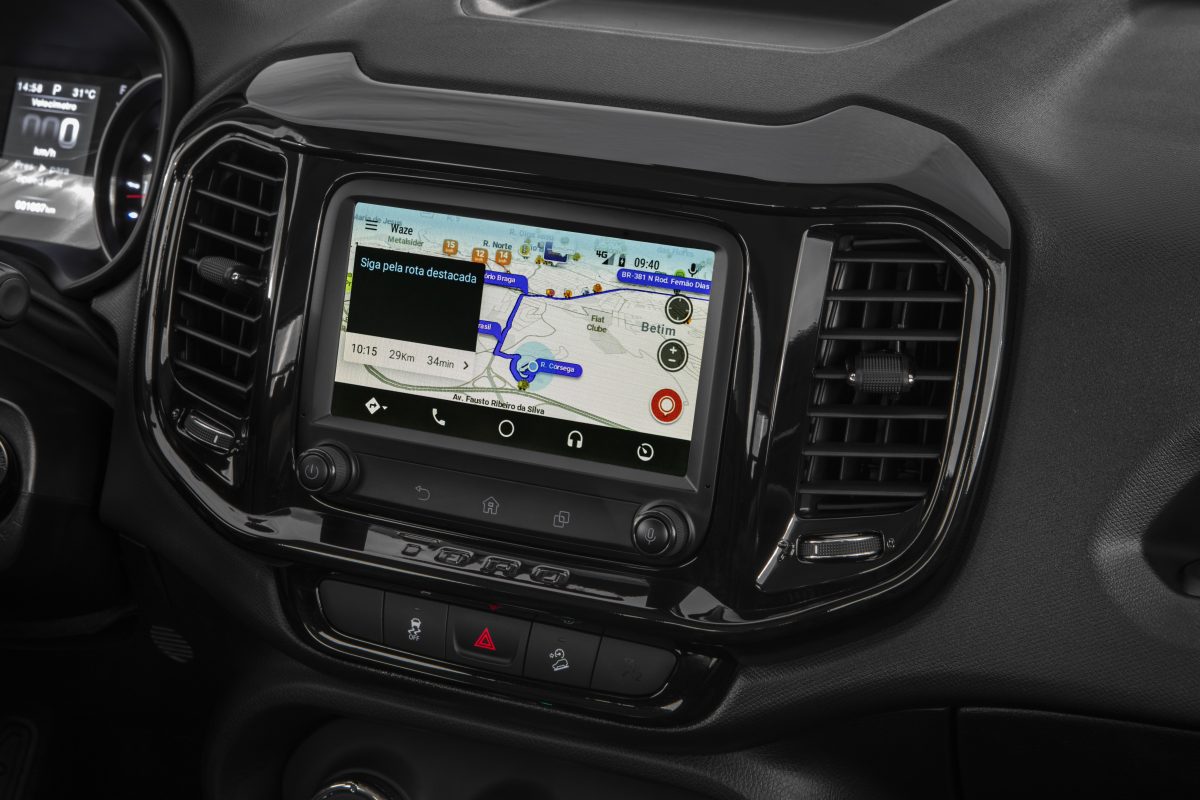 Acompanhando as tendências e escutando sugestões dos usuários, a nova central multimídia cresceu 40% e traz tela tátil (touch screen) de 7″ no painel central do Fiat Toro 2020. Junto com esta ampla tela de fácil visualização veio também muita mais tecnologia, escolhida entre o que existe de mais atual em equipamentos eletrônicos. Com alta definição de 800×480 pixels, o sistema funciona com o novíssimo Android 8.0 e uma CPU de 800 MHz para rápido processamento de dados. Com memória interna de 4 GB para armazenamento de informações, trabalha com rápida memória RAM de 1GB.