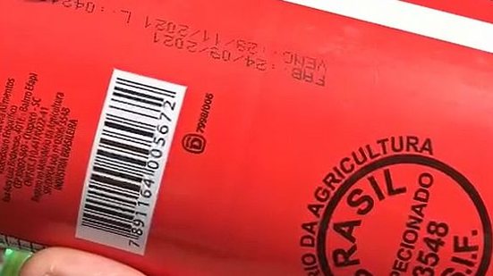 Na imagem, o coordenador da Vigilância Sanitária de Maceió, Airton Santos, aplica com um spray o álcool no rótulo, que limpa a adulteração e mostra a data correta. No alimento em questão, a data verdadeira era do dia 23 de novembro, mas estava falsificada para o dia 29.