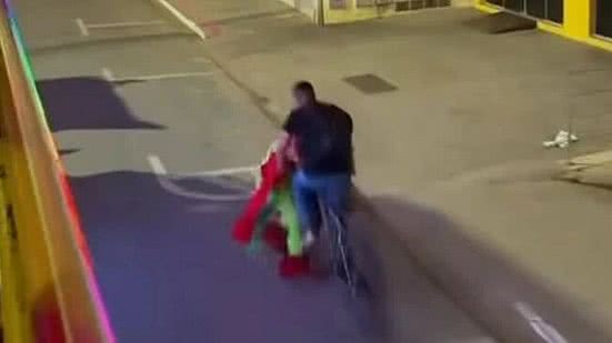 No fim do vídeo o ciclista e Fofão aparecem caídos no chão. Pelas imagens não é possível ver se algum dos dois se machucou.