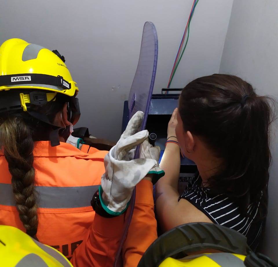 Os agentes da corporação precisaram utilizar equipamentos normalmente empregados nas ocorrências de salvamento em veículos para obter êxito no trabalho.
