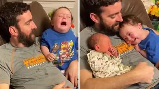 Quando a mãe tira a bebê de perto dele, ele começa a chorar. Dá para acreditar que uma criança tão pequena tenha criado uma conexão tão imediata com a irmã? É de amolecer o coração de qualquer um!