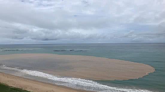 Neste domingo (26), moradores do bairro Guaxuma, no Litoral Norte de Maceió, registraram uma grande mancha no mar, após a ocorrência de chuvas que segue desde a madrugada de hoje.