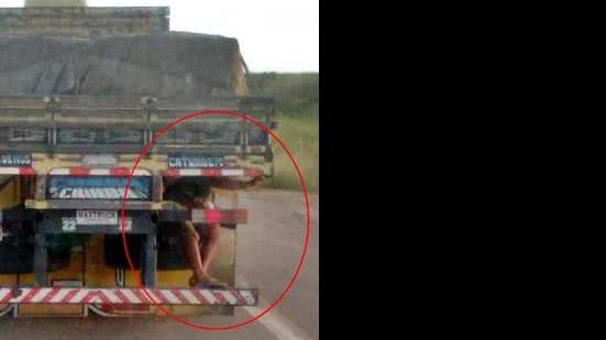 Por mais de 20 km um internauta acompanhou o percurso do veículo e testemunhou o risco de vida que o caroneiro corria sentado no pneu, sem qualquer segura. “Risco tanto para ele, quanto para quem seguia atrás do veículo”, lembrou o caminhoneiro, que enviou as imagens ao AlagoasWeb.