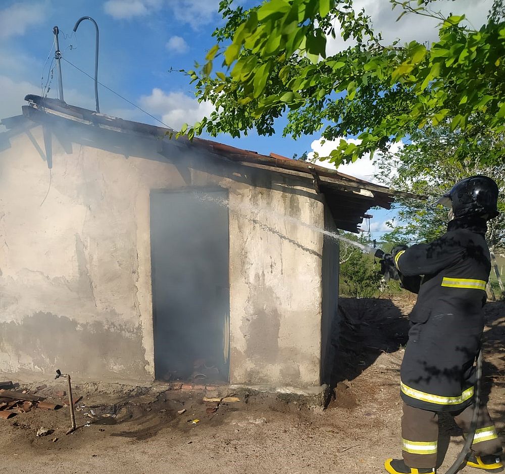 Segundo os militares, um dos moradores do local relatou que as chamas começaram após o irmão dele ter ateado fogo em um botijão de gás. Rapidamente, o incêndio se alastrou pelos cômodos da residência e consumiu todo o interior dela.
