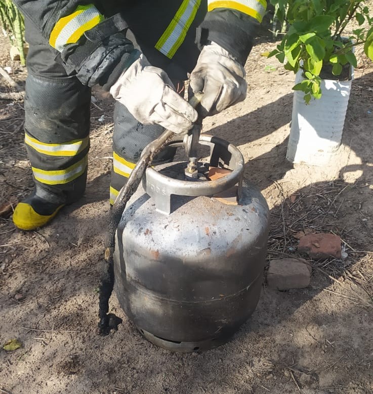 Outro registro feito pela corporação mostra o botijão de gás que teria provocado o incêndio.