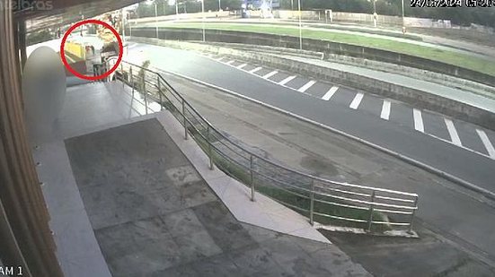 As imagens mostram a vítima, com boné na cabeça e vestida com camisa vermelha e bermuda bege, correndo na calçada em frente a uma churrascaria por volta das 5h. O homem aparenta estar assustado e olha para trás. Nesse momento, a câmera capta a presença de dois suspeitos em motocicleta, que aparecem na contramão.