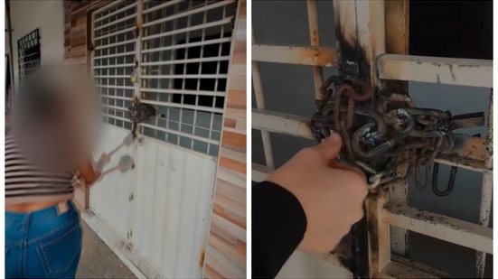 Imagens divulgadas pela advogada da vítima (veja abaixo) mostram que ela encontrou o portão de entrada da casa soldado e acorrentado. O suspeito também estava no local e confrontou a vítima e a advogada. A vítima utilizou uma marreta para quebrar as correntes e conseguir acessar o imóvel.