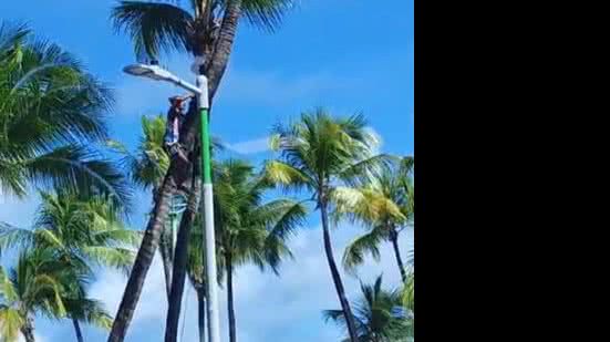 Um homem em situação de rua, de 32 anos, foi preso em flagrante na tarde desta segunda-feira, 8, após subir em mais de um coqueiro para furtar cabos e refletores que estavam sendo usados na iluminação pública, no bairro da Ponta Verde, em Maceió.
