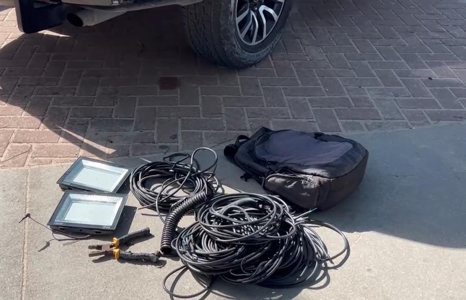 Com ele, os policiais encontraram uma mochila onde estavam escondidos dois refletores e uma quantidade não informada de fios elétricos.