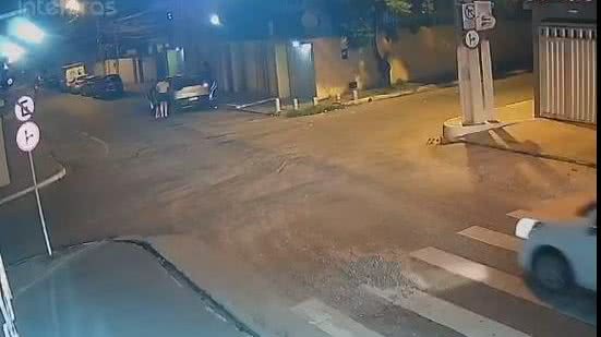 O roubo aconteceu por volta das 20h45 e a situação foi toda capturada por uma câmera de segurança. As imagens mostram a chegada dos criminosos ao local do crime, em um Fiat Strada de cor vermelha, e o momento em que o homem é surpreendido ainda dentro do veículo, um Tracker de cor prata.