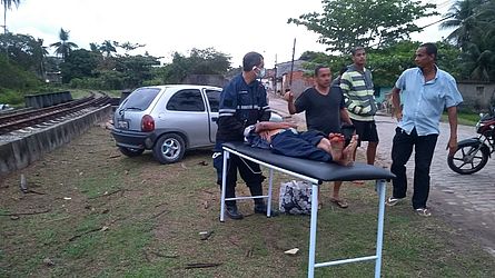 Uma equipe do Serviço Móvel de Atendimento de Urgência (Samu) esteve no local e fez os primeiros socorros. De acordo com a assessoria de comunicação do Samu, o homem sofreu um corte na cabeça e uma possível fratura no dedo do pé direito. Ele foi levado para o Hospital Geral do Estado (HGE).