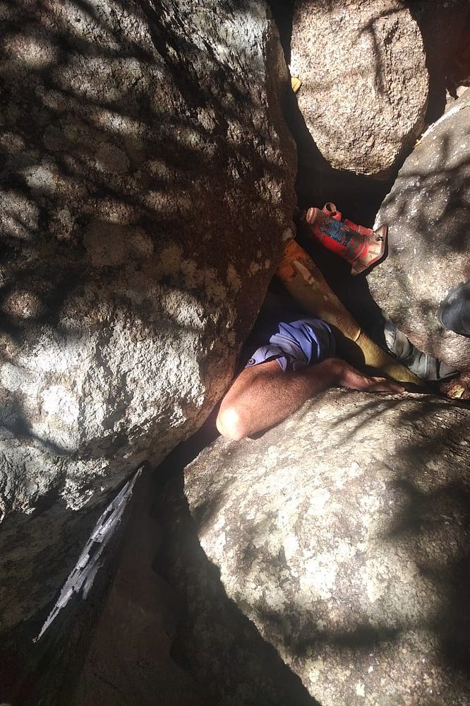 Segundo o Corpo de Bombeiros, o homem estava caçando mocó, uma espécie de roedor comum na região, quando uma pedra deslizou e ele ficou preso. Uma equipe foi ao local e conseguiu fazer o socorro da vítima.