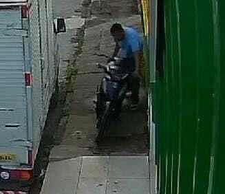A moto estava ao lado de um caminhão e de um trailer, o que ajudou a ação não ter sido flagrada por populares no momento. O suspeito estava vestindo uma camisa azul, com uma calça jeans e usava chinelos brancos. Ainda não há informações a respeito da identidade dele.