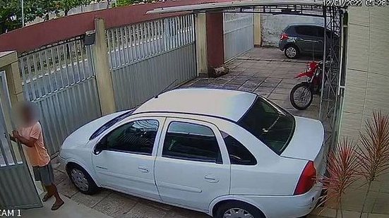 As imagens registraram o homem forçando a entrada pelo portão social do prédio e colocando algum objeto para evitar que a fechadura travasse novamente. A câmera revela que o suspeito passa pelo menos três minutos andando pela garagem. Ele tenta furtar uma bicicleta, mas não consegue.
