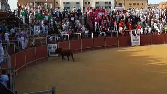 As imagens compartilhadas nas redes sociais mostram que o trabalhador tenta fugir entre as cercas portáteis, mas o touro invade o beco. Neste momento, gritos são ouvidos quando o animal atinge o homem e a cerca ao mesmo tempo.