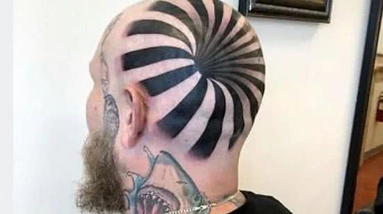 Um talentoso tatuador viralizou após mostrar um incrível trabalho com ilusão de óptica feito na cabeça de um amigo.
