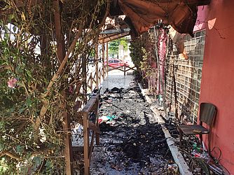 O princípio de incêndio atingiu colchões, roupas e móveis que estavam na casa. Os bombeiros utilizaram água para debelar o fogo. Não havia nenhum morador na hora que os militares chegaram.