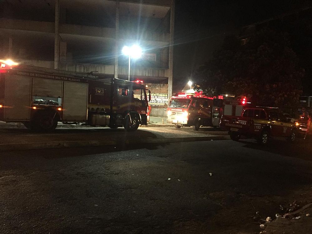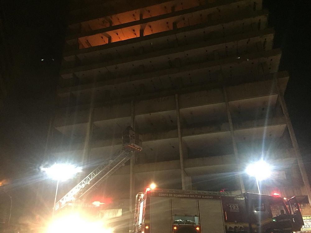Três viaturas e uma caminhão tanque do Corpo de Bombeiros foram usados para controlar as chamas em três andares - 7º, 8º e 10º - no Edifício Palmares, no Centro de Maceió, onde já funcionaram sedes de órgãos federais como Ministério da Saúde e IBGE.