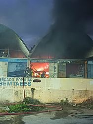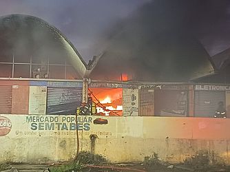 Um comerciante também conversou com a reportagem e destacou que o incêndio foi de grandes proporções. "Começou umas três da manhã. O fogo chegou rápido, foi muita fumaça. Nós acionamos os bombeiros e logo eles chegaram", disse assustado.