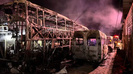 Segundo a corporação, o fogo atingiu dois ônibus e duas vans, deixando destruídos. Além disso, dois carros estacionados e também um caminhão tiveram danos materiais. Os militares utilizaram água para extinguir as chamas e evitar a propagação para outras áreas.