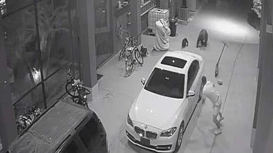 O veículo do atleta estava estacionado em frente a um centro comercial quando ele viu os animais. Com um patinete elétrico, Haha se aproximou do carro e acabou fugindo ao ver os ursos.