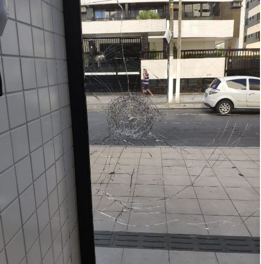 Segundo os moradores, o suspeito já quebrou três vezes os vidros da portaria do condomínio, a pedradas. A ação foi filmada por câmeras de segurança