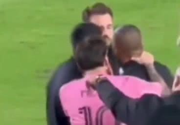 Messi foi até o assistente técnico do NY City FC, Mehdi Ballouchy, para continuar a reclamação e apertou o pescoço do auxiliar. O argentino continuou dizendo algumas palavras até que se retirou do campo, enquanto Ballouchy apenas observou o atleta.
