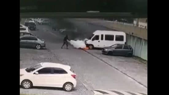 Por meio de um vídeo que circula nas redes sociais, é possível ver os moradores usando extintores e água para controlar o princípio de incêndio na parte dianteira veículo.