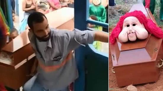 Em dado momento, o corpo é levado para a carreta da Alegria, carregado, inclusive por um homem vestido de Goku. O cortejo recebe aplausos e, antes do caixão ser enterrado, uma pessoa coloca a máscara do Fofão sobre a urna.