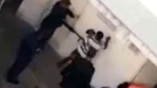 Com as mãos no alto e virado para a parede, ele ainda argumenta com os guardas, mas um deles ordena que ele abaixe a cabeça e fique calado. O mesmo guarda bate nas costas do morador algumas vezes para que ele não fale, até que em determinado momento o agente dá uma forte pancada no homem porque ele abaixou uma das mãos.