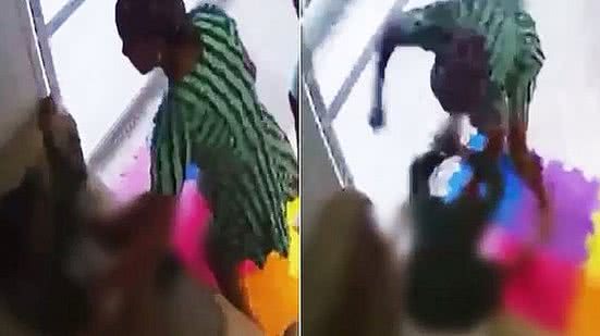 Ainda dá para ouvir Melina perguntar se a vítima acha certo o que ela estava fazendo, pede respeito e chama a jovem de horrorosa. Ao lado, aparece uma outra mulher com uma criança no colo. É possível ouvir o choro do bebê, que presencia as agressões.