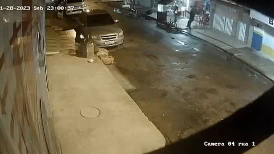 Já atingido pelos tiros, o comerciante cai no chão, próximo à churrasqueira, e um homem que estava próximo corre para dentro do estabelecimento para escapar dos disparos. O atirador foge na mesma direção que veio. O horário da câmera mostra que o homicídio aconteceu às 23h. Assista abaixo: