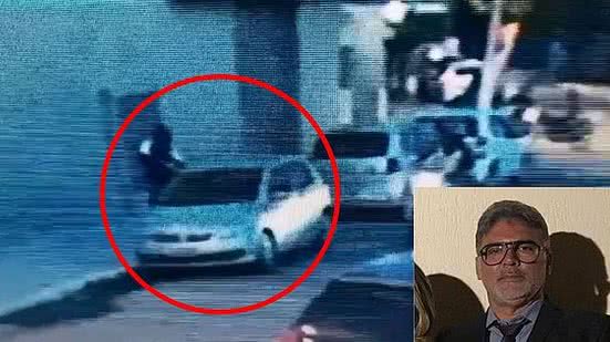 Na sequência, o vídeo mostra que o passageiro da moto desce, vai até o empresário, o empurra e efetua um disparo quando o empresário já está no chão. O atirador se abaixa, pega alguma coisa, corre em direção à moto, e a dupla foge.