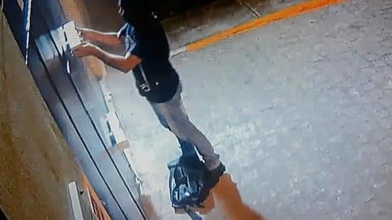 No vídeo, é possível ver o momento em que um homem chega sozinho vestindo uma blusa preta, capuz no rosto e uma mochila na mão. Ele se aproxima da porta para colocar os explosivos e se afasta correndo com um fuzil na mão.