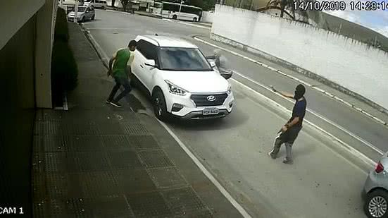 No vídeo, é possível ver que um veículo com ao menos quatro pessoas estaciona perto do local onde o crime ocorreria, e três descem. Um deles aponta a arma, e o carro com os familiares de Neno parte em velocidade.