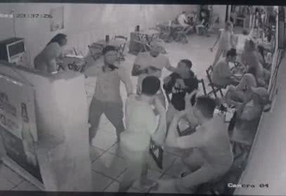 Veja o momento em que os criminosos invadem o estabelecimento, que fica localizado na Rua Fernandes de Barros, e dão início a um intenso tiroteio: