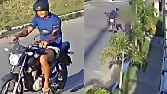 A mulher estava acompanhada do marido e praticava a atividade física em plena luz do dia. As imagens mostraram que o motociclista parou o veículo ao lado dela e a tocou por trás. Em seguida, o homem, que vestia camisa azul e estava com capacete na cabeça, deixou o local como se nada tivesse acontecido.